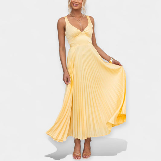IšparduotaGeltona Plisuota Maksimalinė Suknelė