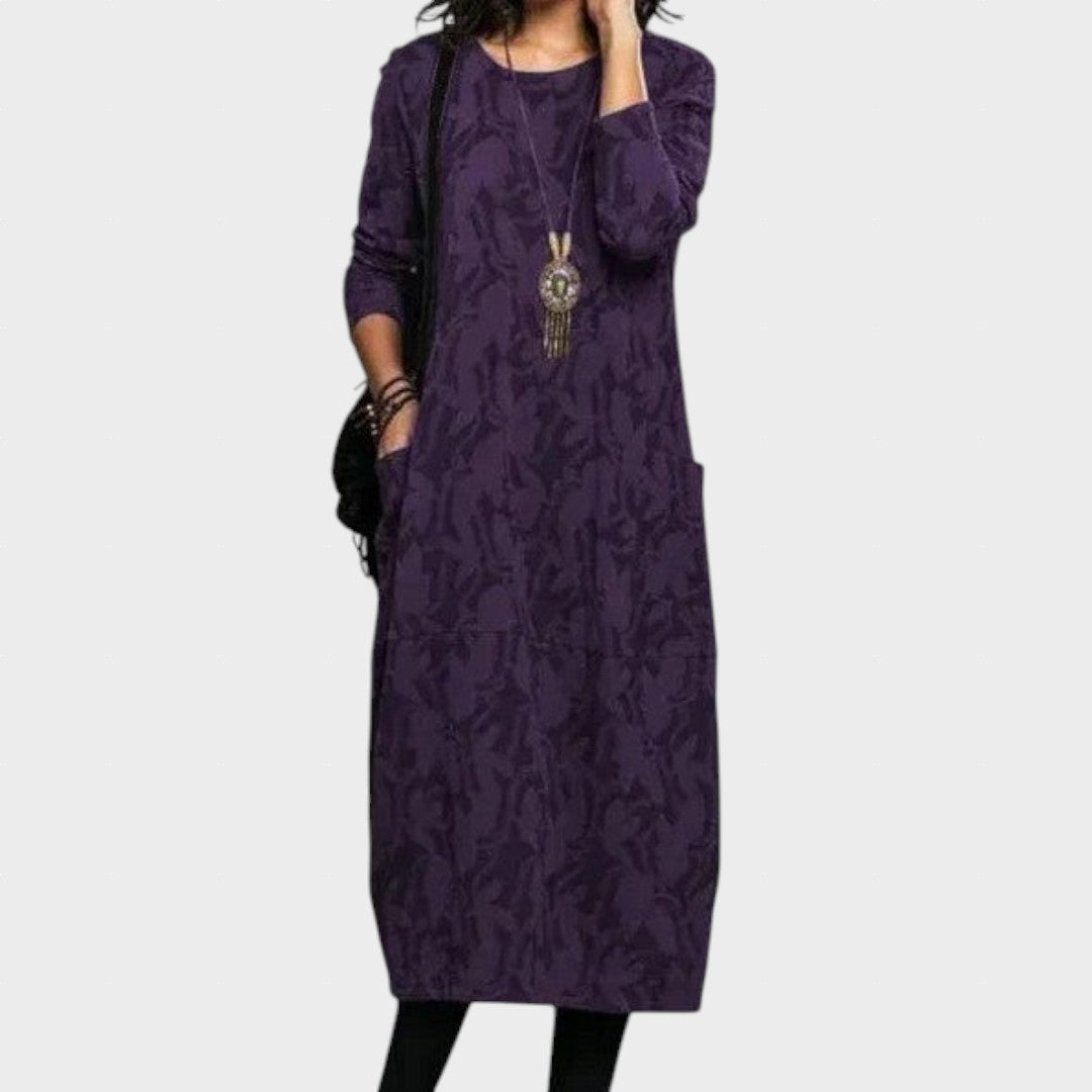 Pagaminta iš minkštos ir kvėpuojančios medžiagos, ši suknelė suteikia laisvės pojūtį ir užtikrina maksimalų komfortą visą dieną. Jos elegantiškas dizainas su subtiliu raštu ir didelėmis kišenėmis prideda praktiškumo, o stilingas aksesuaras puikiai pabrėžia išskirtinumą.