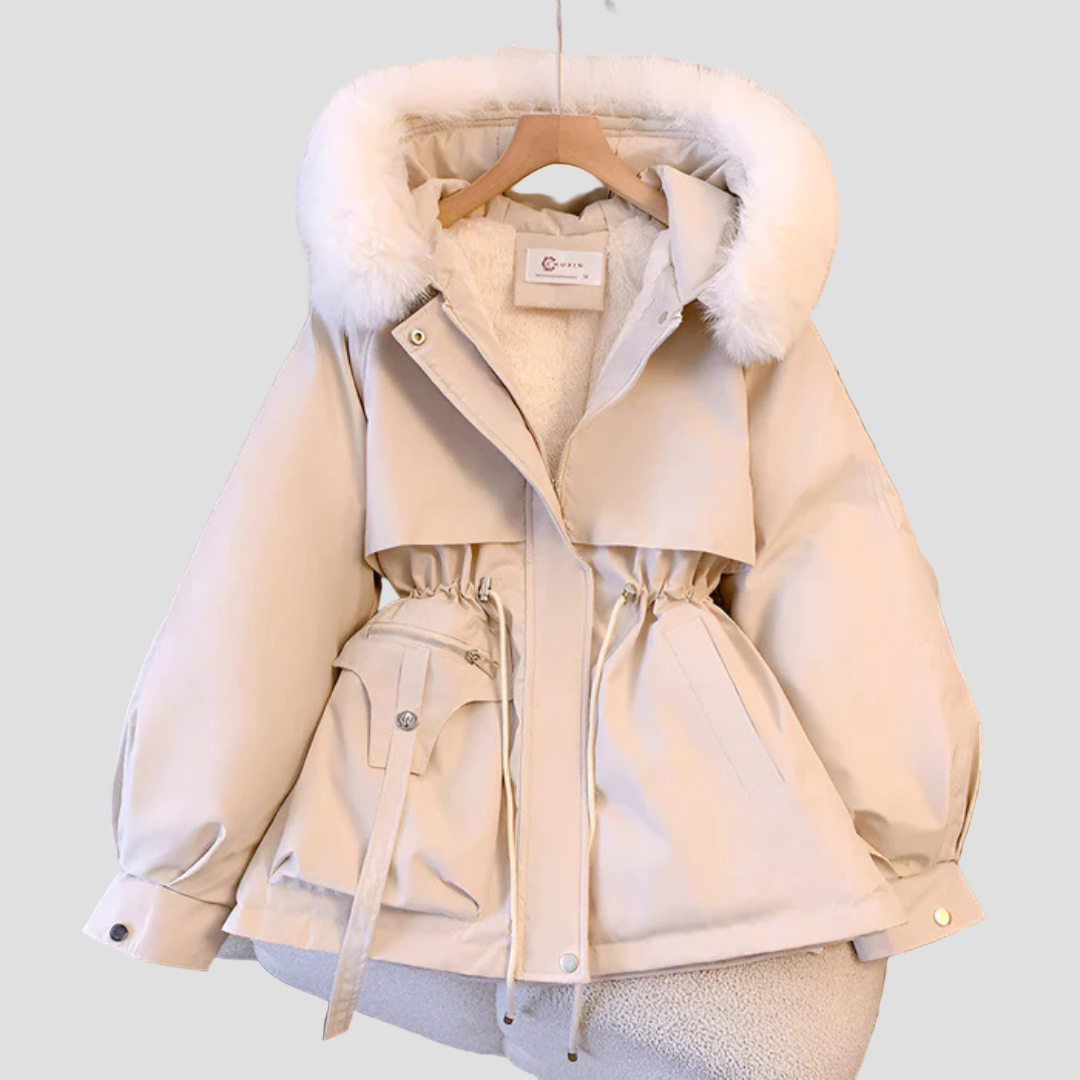 - Apykaklė: elegantiška apdaila su sintetiniu kailiu – papildoma apsauga ir stilius.