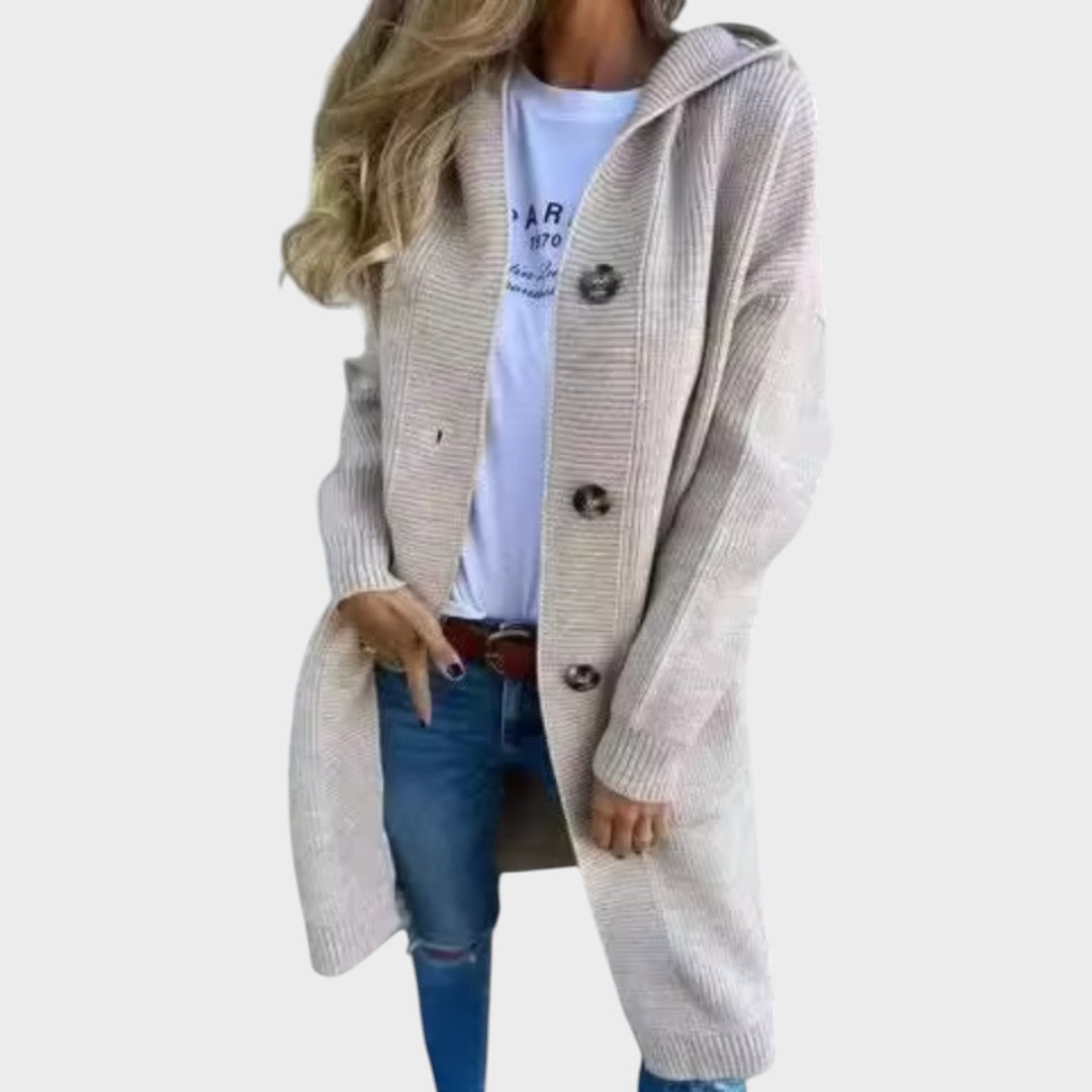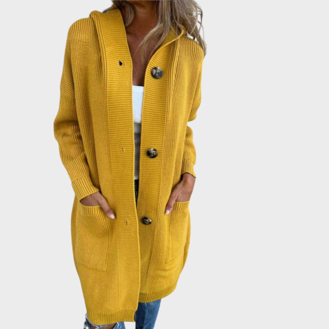 Šis ilgesnio modelio megztinis – nepakeičiamas drabužis rudens bei pavasario sezonams. Klasikinės linijos, patogios priekinės kišenės ir didelės sagos suteikia jam išskirtinį charakterį. Universalus dizainas leidžia lengvai derinti tiek prie džinsų, tiek prie suknelių, todėl tai puikus pasirinkimas tiek kasdienai, tiek jaukioms savaitgalio akimirkoms.