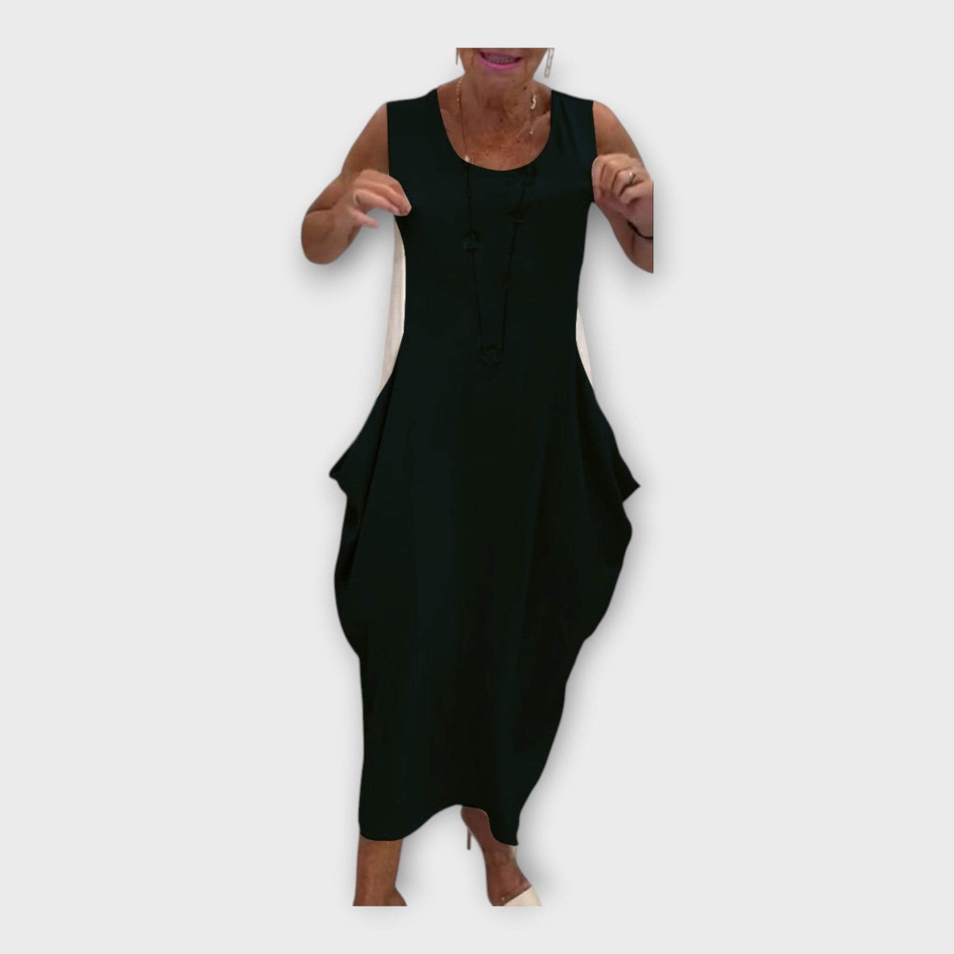 Lengvas suknelė su modernia siluetu ir kišenėmis