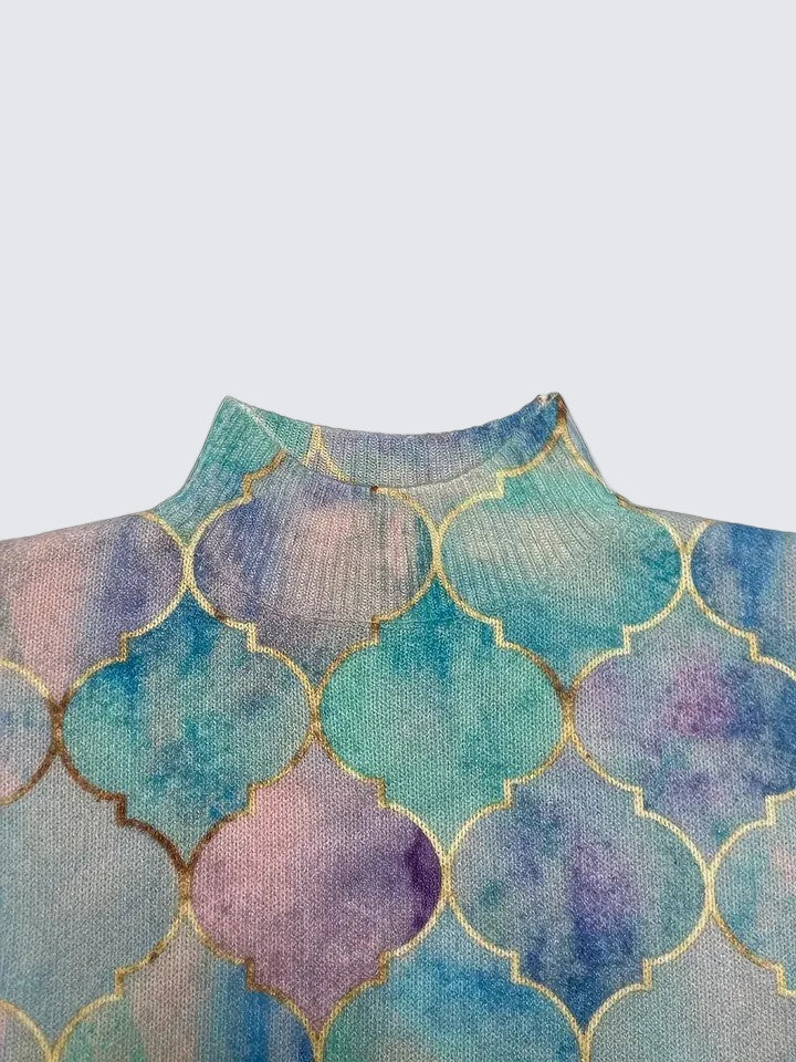 Unikalus dizainas: įspūdinga pastelinių spalvų kombinacija su blizgančiu auksiniu raštu, kuris tikrai išsiskiria.