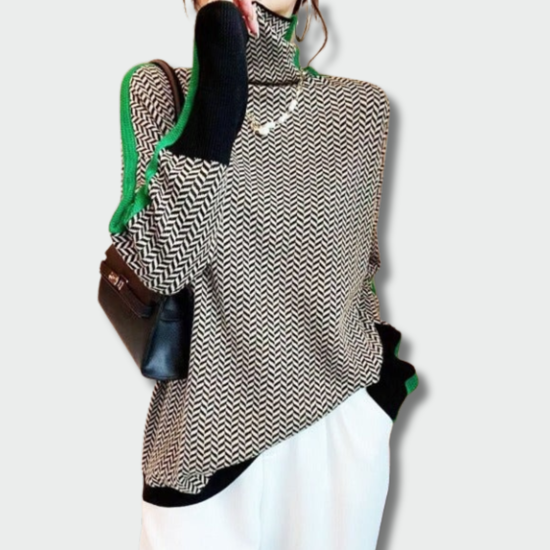 Simona™ – Kontrastingų Juostų Golfo Megztinis